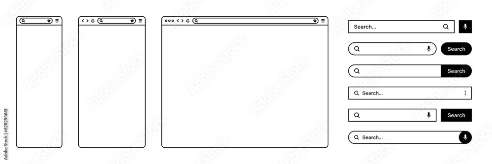 Wall mural blank web browser, internet page window with toolbar and search bar, field. modern website in flat s - Wall murals Wall mural blank web browser, internet page window with toolbar and search bar, field. modern website in flat s - Wall murals
