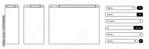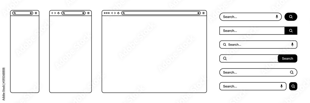 Wall mural blank web browser, internet page window with toolbar and search bar, field. modern website in flat s - Wall murals Wall mural blank web browser, internet page window with toolbar and search bar, field. modern website in flat s - Wall murals