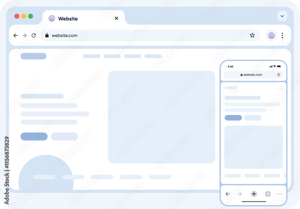 Wall mural blank web browser window with tab, toolbar and search field. modern website, internet page in flat s - Wall murals Wall mural blank web browser window with tab, toolbar and search field. modern website, internet page in flat s - Wall murals