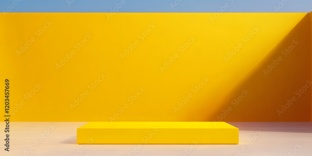 The watermark will not be included on Wall mural.: Blank yellow display on vivid summer background with minimal style - blank stand for showing product -