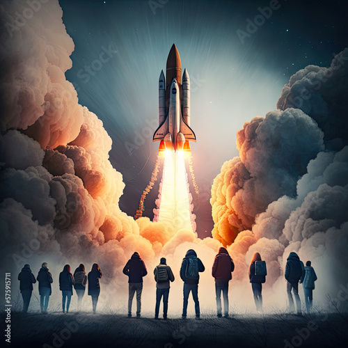 The watermark will not be included on Wall mural.: Blast off into the future with the rocket and its crew created using generative ai