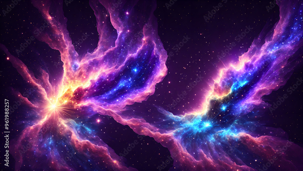 Wall mural blinking glimmers in a colorful nebula background 3d wallpaper - Wall murals Wall mural blinking glimmers in a colorful nebula background 3d wallpaper - Wall murals