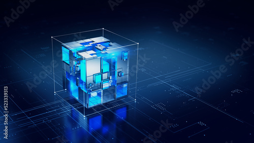 Wall mural block chain concept - abstract technology background. 3d rendering