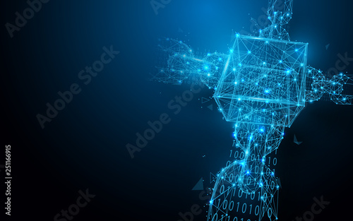 Wall mural block chain network connections from lines, triangles and particle style design. illustration vector