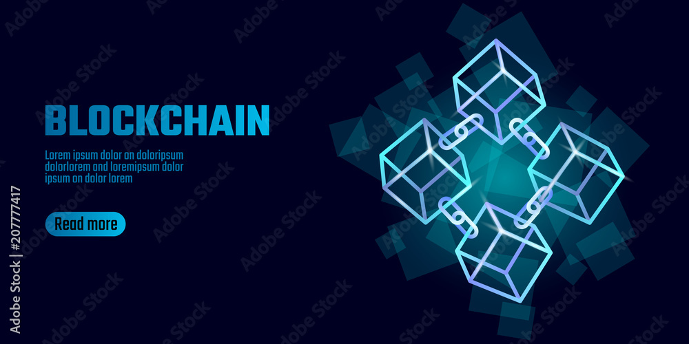 Wall mural blockchain cube chain symbol on square code big data flow information. blue neon glowing modern tren - Wall murals Wall mural blockchain cube chain symbol on square code big data flow information. blue neon glowing modern tren - Wall murals