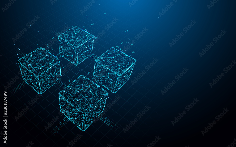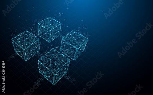Wall mural blockchain form lines, triangles and particle style design. illustration vector