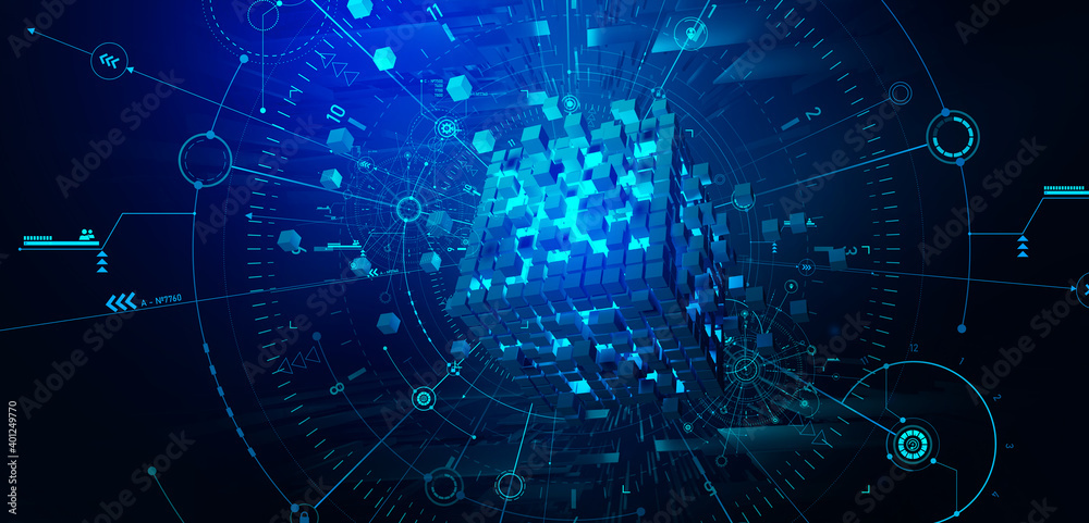 Wall mural blockchain hi tech. information blocks form a decentralized global database structure. 3d illustrati - Wall murals Wall mural blockchain hi tech. information blocks form a decentralized global database structure. 3d illustrati - Wall murals