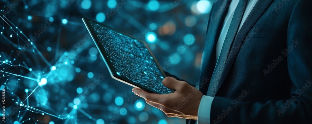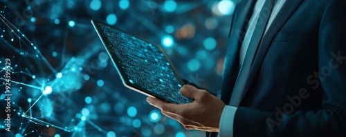 Wall mural blockchain technology, data encryption. businessman using digital tablet with ai blockchain technolo - Wall murals Wall mural blockchain technology, data encryption. businessman using digital tablet with ai blockchain technolo - Wall murals