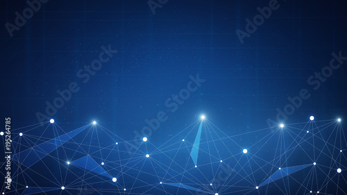 Wall mural : Blockchain technology network futuristic hud background with chain of blocks polygon peer to peer ne