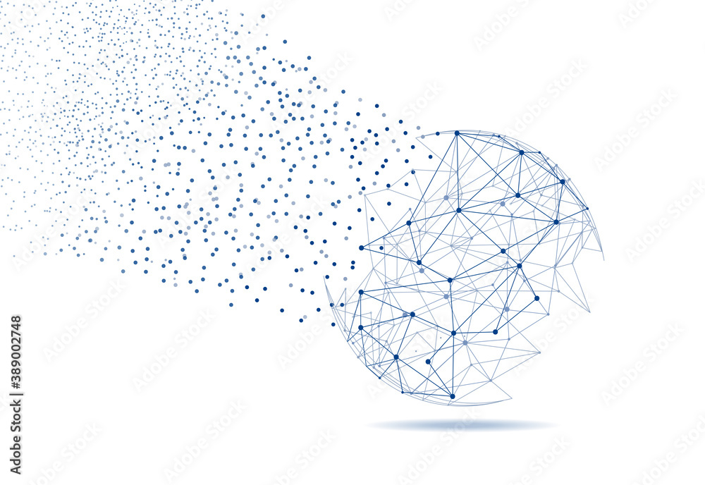 Wall mural : Blockchain technology network isolated on white background - world globe blockchain technology backgr