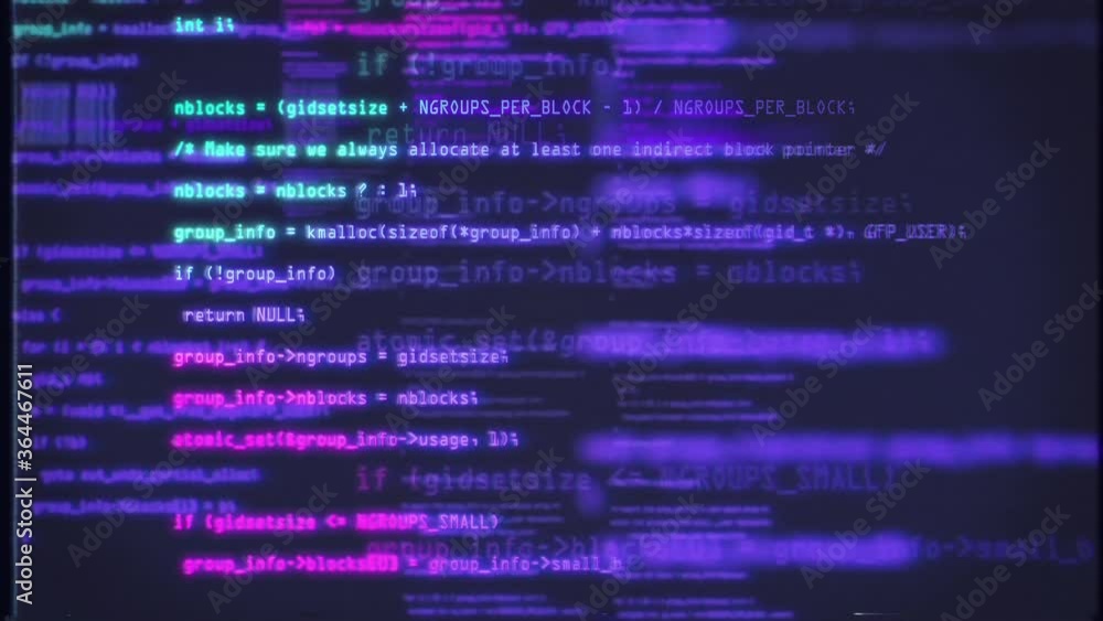Blocks of abstract program code are written and moved on old screen monitor - blue and purple code - dWall mural