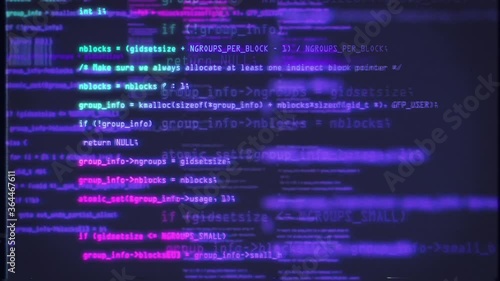 Wall mural blocks of abstract program code are written and moved on old screen monitor. blue and purple code. d