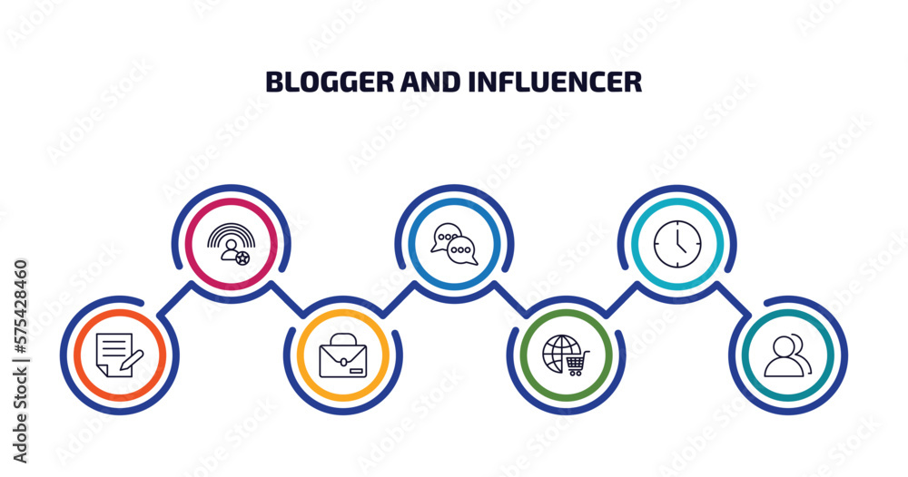 Wall mural : Blogger and influencer infographic element with outline icons and 7 step or option - blogger and infl