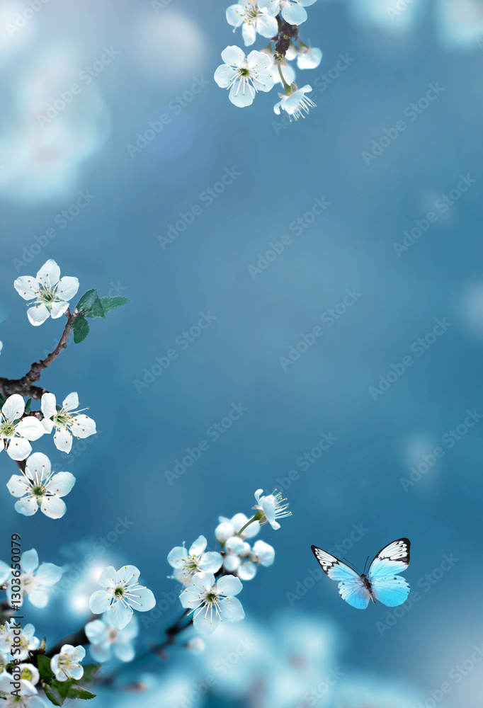 The watermark will not be included on Wall mural.: Blossom tree over nature background with butterfly - spring flowers - spring background -