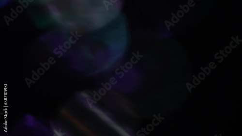 The watermark will not be included on Wall mural.: Blue, mint and purple bokeh moving background - shimmering motion of bokeh on black - defocused circle
