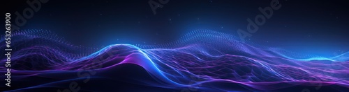 Wall mural blue abstract graphic particle wave background. modern purple blue gradient flowing wave lines. dark