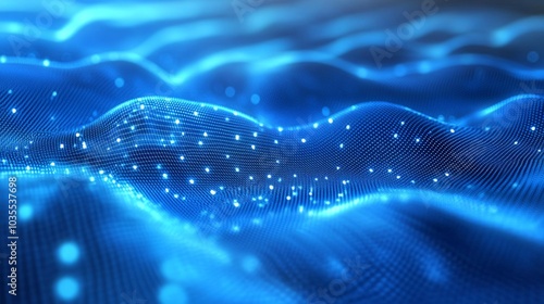 Blue abstract seamless network backdrop featuring interconnected dots and squares, ideal for technolWall mural