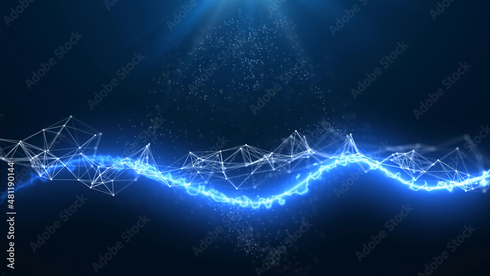 Wall mural blue abstract technology background. elegant lines and dots fantasy. depth of field settings. 3d ren