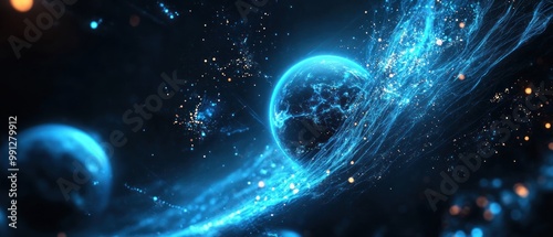 Wall mural blue abstract view of amazing glowing planet from space background wallpaper ai generated image - Wall murals Wall mural blue abstract view of amazing glowing planet from space background wallpaper ai generated image - Wall murals