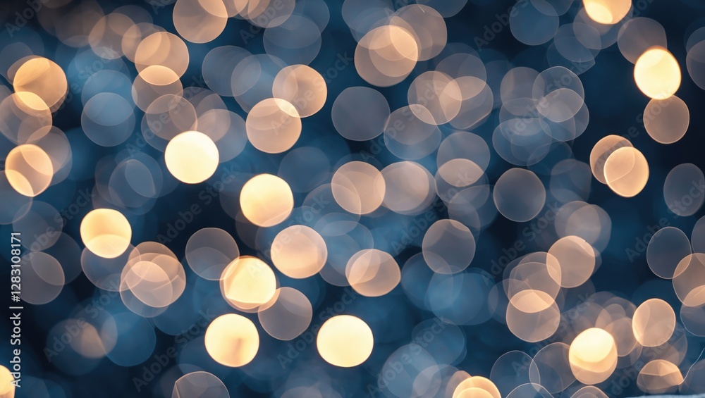 The watermark will not be included on Wall mural.: Blue and gold bokeh lights background with soft focus and circular patterns creating an abstract fes