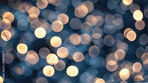 Wall mural : Blue and gold bokeh lights background with soft focus and circular patterns creating an abstract fes
