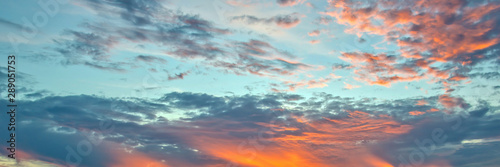 Wall mural blue and orange sky with clouds, panoramic background - Wall murals Wall mural blue and orange sky with clouds, panoramic background - Wall murals