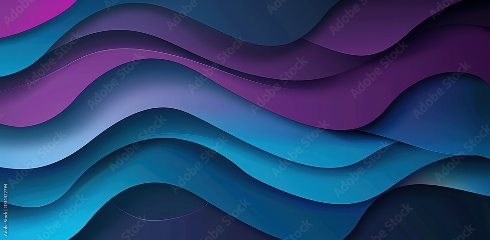 The watermark will not be included on Wall mural.: Blue and purple gradient background with smooth lines on a blue background smooth curves wave -