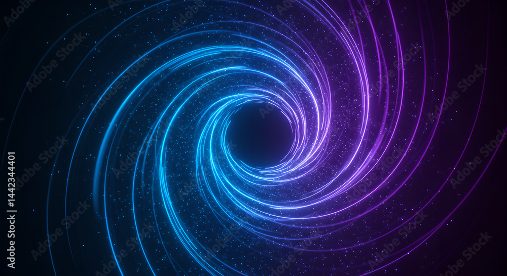 The watermark will not be included on Wall mural.: Blue and purple light streaks creating a spiral tunnel with sparkling particle dust - abstract digita