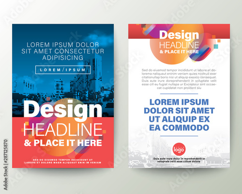 Wall mural blue and red brochure cover flyer poster design layout vector template. abstract gradient rounded sh