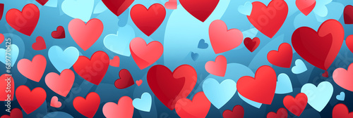 Wall mural blue and red hearts pattern background banner. valentine's day. panoramic web header with copy space - Wall murals Wall mural blue and red hearts pattern background banner. valentine's day. panoramic web header with copy space - Wall murals