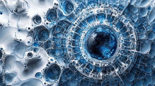 The watermark will not be included on Wall mural.: Blue and white abstract circuits forming intricate patterns across a metallic background