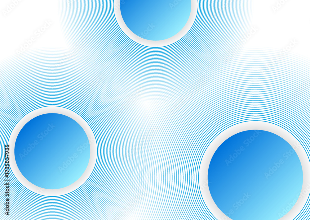 Wall mural blue and white minimal hi-tech geometric background with linear circles. vector design
