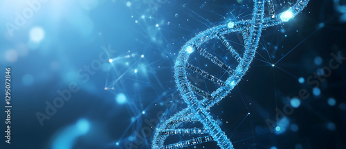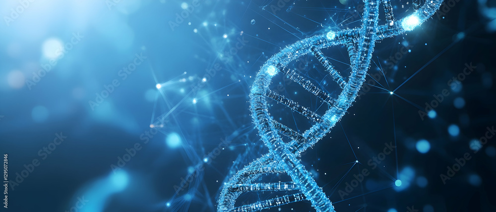 Wall mural blue background with a dna helix and digital network - - Wall murals Wall mural blue background with a dna helix and digital network - - Wall murals