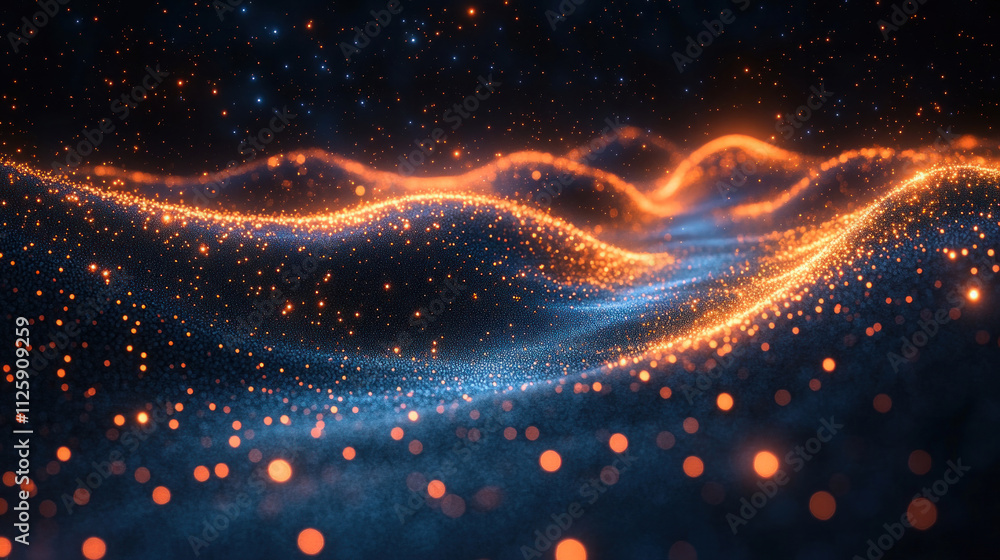 Wall mural blue background with layers of glowing grids creating a futuristic aesthetic - Wall murals Wall mural blue background with layers of glowing grids creating a futuristic aesthetic - Wall murals