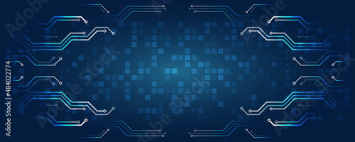 Wall mural blue background with various technological elements. hi-tech computer digital technology concept. ab