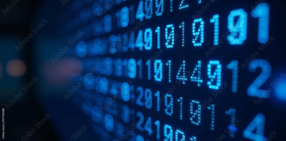 The watermark will not be included on Wall mural.: Blue binary code digits on computer screen with glowing effect, programming, internet, data