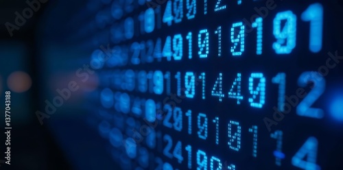 Blue binary code digits on computer screen with glowing effect, programming, internet, dataWall mural