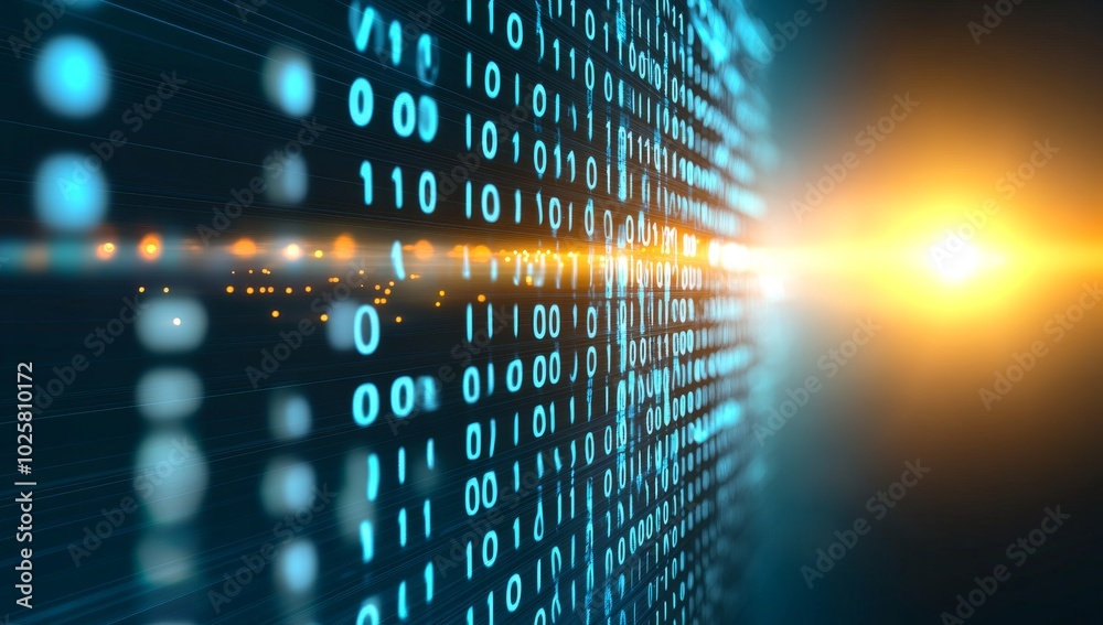 Wall mural blue binary code with glowing lights