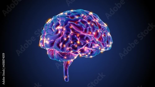 The watermark will not be included on Wall mural.: Blue brain spinning in a 3d animation with neurons sparkling