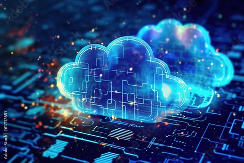 Wall mural : Blue circuit board background - cloud network solution digital background - generative ai