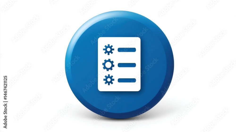 Blue circular button or icon with gears or settings symbol representing computer software controlsWall mural