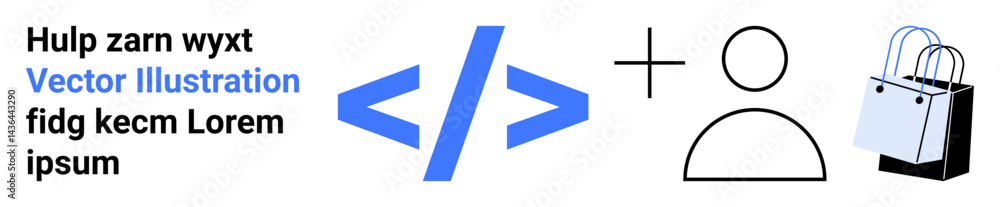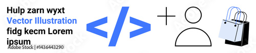 Wall mural : Blue coding angle brackets, user icon, and shopping bags representing programming, users, and e-comm