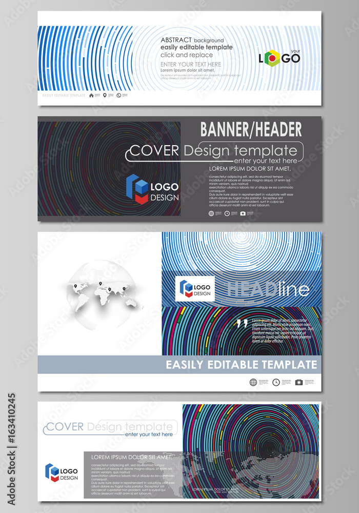 Wall mural : Blue color background in minimalist style made from colorful circles - social media and email headers