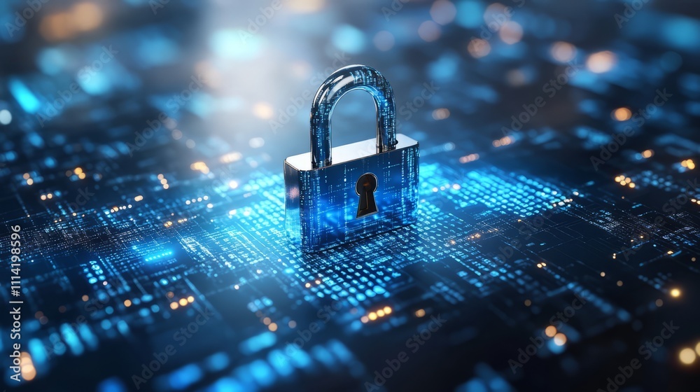 Wall mural blue digital background with a padlock symbol and binary code for a security concept - Wall murals Wall mural blue digital background with a padlock symbol and binary code for a security concept - Wall murals