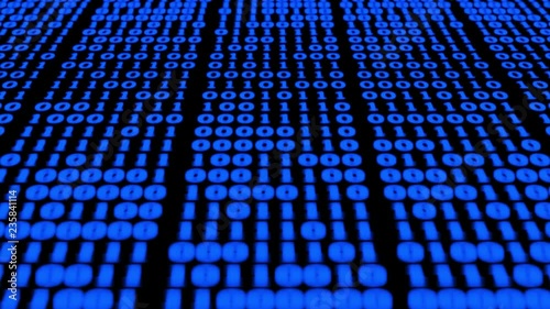 Wall mural : Blue digital binary data - camera zooming process, 4k