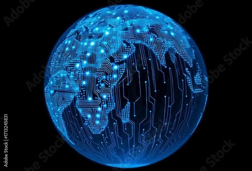 The watermark will not be included on Wall mural.: Blue digital globe with circuit lines and global network connections, representing the concept of in