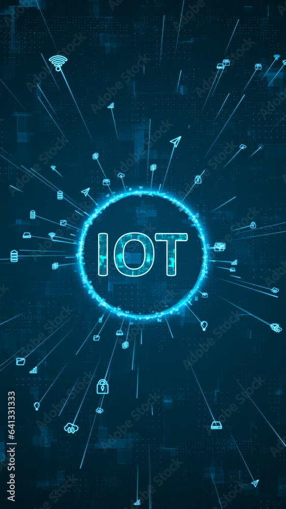 Wall mural blue digital iot logo and ring rotation around logo with ai icon spread and line linked on abstract  - Wall murals Wall mural blue digital iot logo and ring rotation around logo with ai icon spread and line linked on abstract - Wall murals