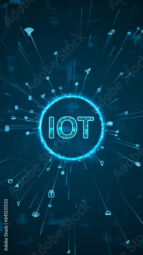 Wall mural blue digital iot logo and ring rotation around logo with ai icon spread and line linked on abstract