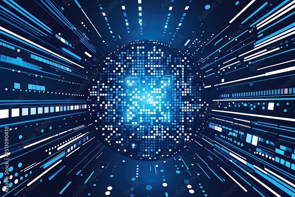 Wall mural : Blue digital technology background featuring dots and square patterns for modern design