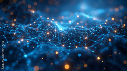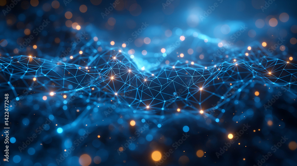 Wall mural blue digital wave background shiny tech particles for futuristic data design.